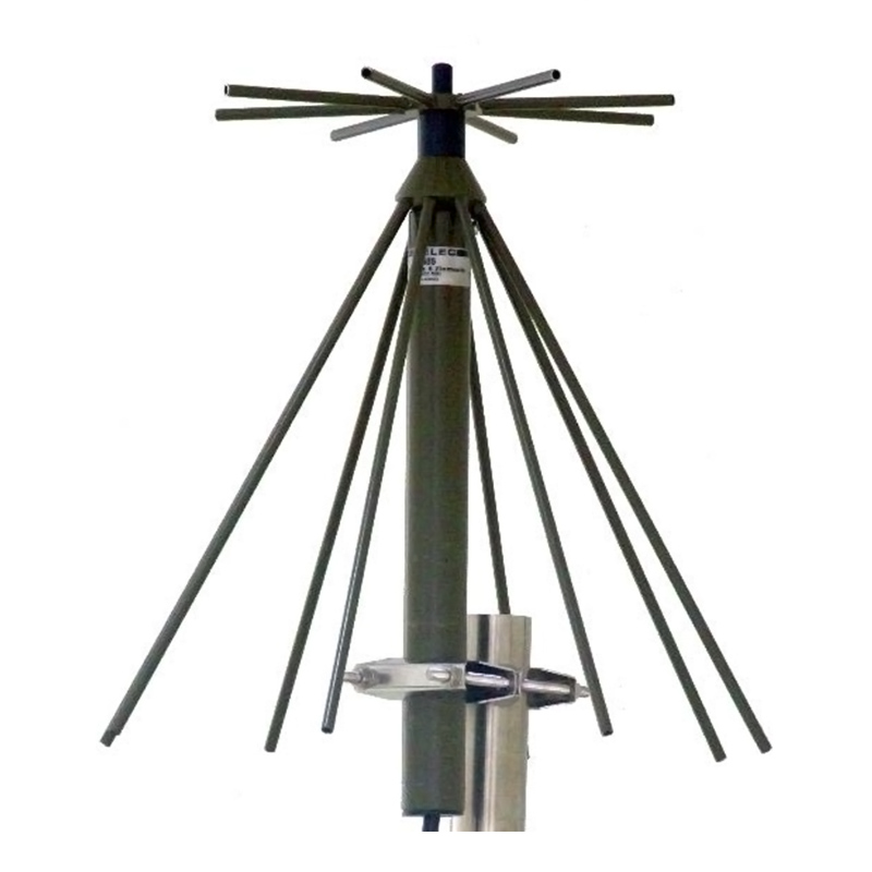 The 02686 Base UHF Discone Antenna is a broadband, omnidirectional solution for transmit and receive applications across 200–520 MHz. Covering key military frequency bands, it delivers reliable wideband performance with low VSWR and 300 W continuous power handling. Constructed from stainless steel with removable radials and a robust base support, the antenna is factory-tuned and requires no further adjustment.