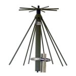 The 02212 is a military-grade discone antenna designed for transmit applications across the 30–600 MHz band. It delivers stable radiation performance throughout the frequency range, making it suitable for a range of tactical deployments. Built with polished stainless-steel elements and hardware, it features a robust central feed and matching radials. A bracing kit is included to reinforce the cone for enhanced durability in field conditions.