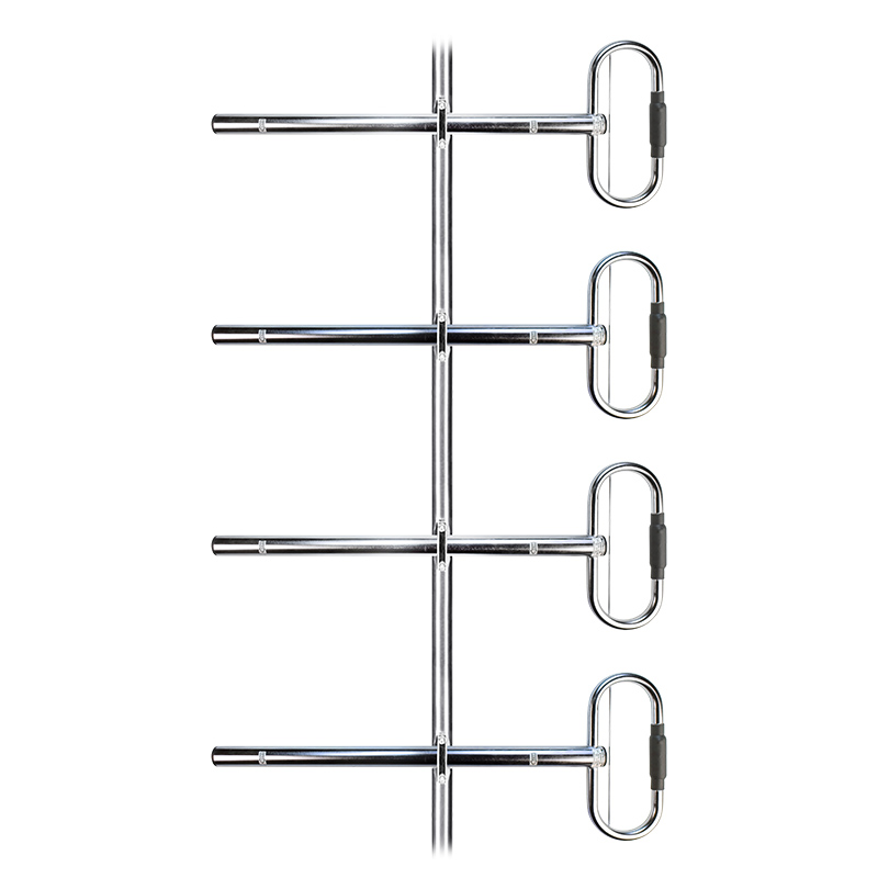 The 02680A4 is a rugged 4-bay offset dipole array designed for broadband operation in the 360–520 MHz band. Each dipole is constructed from fully welded and polished stainless steel, making it suitable for harsh environments. The array supports three mounting configurations ¼, ½, and full wavelength spacing from the vertical mounting pole allowing flexibility in shaping the radiation patterns in the H-plane.