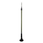 The 02516Z2 is a rugged vehicular UHF GPI antenna designed for omni-directional operation across the 225–450 MHz band. Built for military applications, this frequency range is commonly used for air-to-air and ground-to-air communications, including data links. Constructed with a heavy-duty fibreglass radome, stainless-steel fittings, a reinforced spring, and a robust base assembly, the antenna provides excellent durability and reliable performance in demanding environments. Mounted via a NATO flange (4- or 6-hole), it requires no ground plane or additional tuning for proper operation.